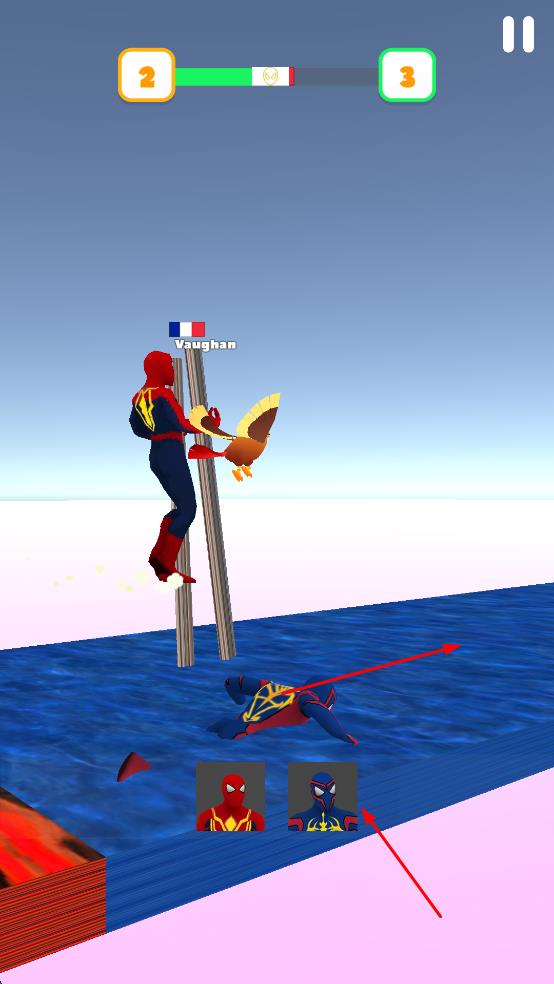 1、操控類似蜘蛛俠的超級英雄角色在不同場景中進(jìn)行跑酷,角色可前后左右移動。