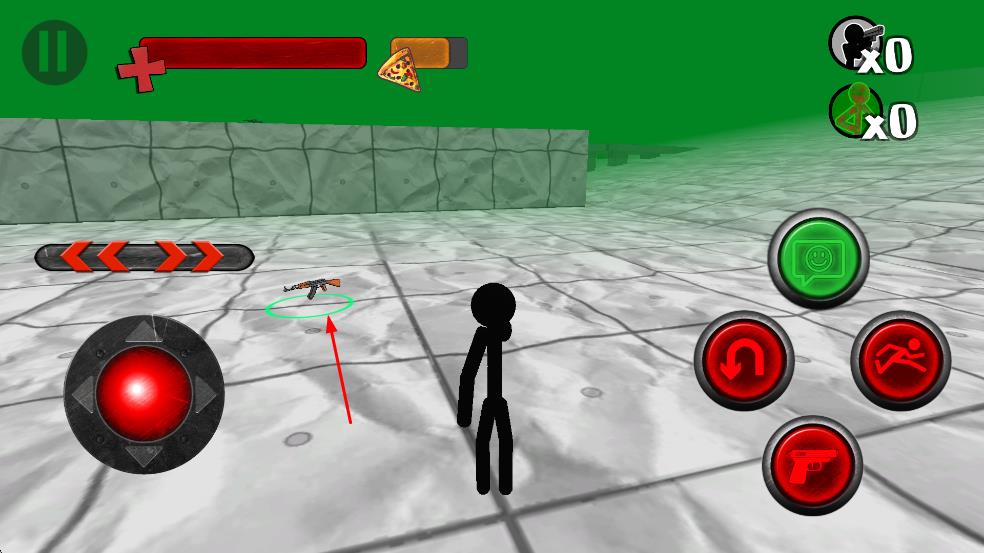 3、會(huì)遇到敵人火柴人,使用收集到的武器射擊敵人,擊敗敵人后可以繼續(xù)前進(jìn)。