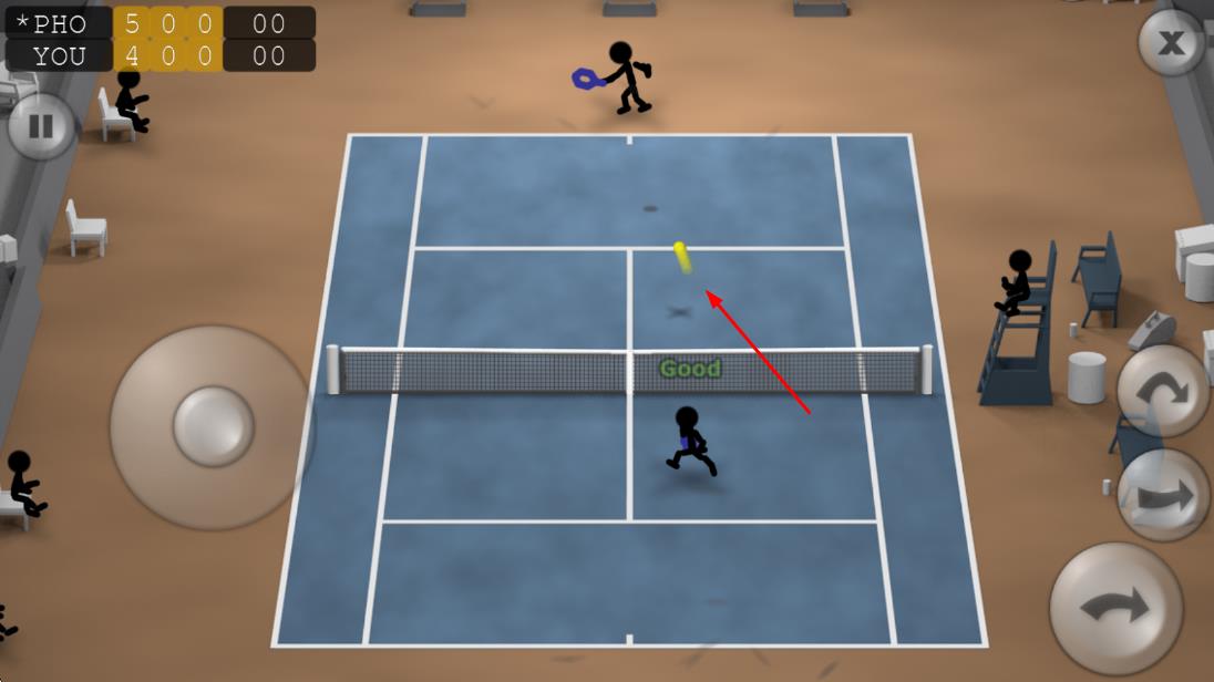 1、靈活移動(dòng)站位:通過(guò)虛擬搖桿控制火柴人在賽場(chǎng)移動(dòng),根據(jù)對(duì)手擊球方向提前調(diào)整站位,確保能在最佳位置接應(yīng)來(lái)球,為擊球創(chuàng)造條件。