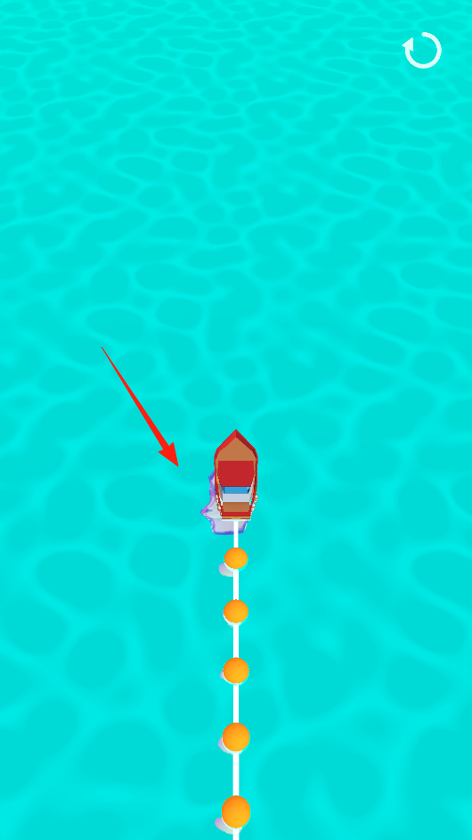 1、進入我的小漁船操控小船沿白色路線前行,路線上的黃色圓點是引導(dǎo)標(biāo)識,跟隨它們可規(guī)劃行進路徑在藍色水域中開啟捕魚冒險,體驗路徑引導(dǎo)機制。