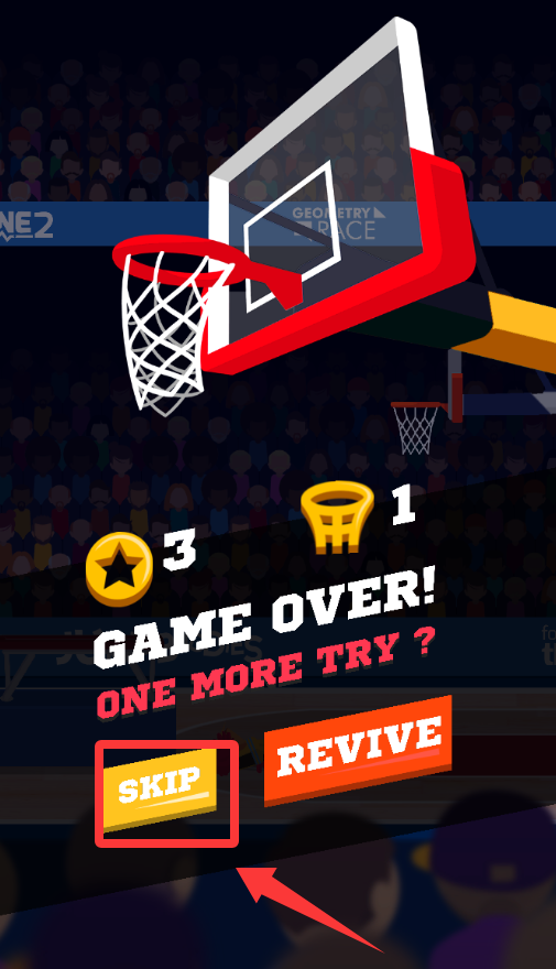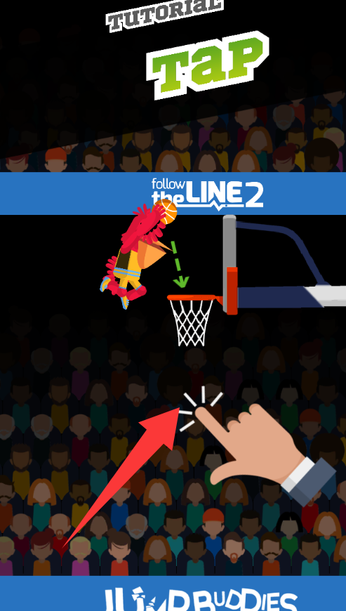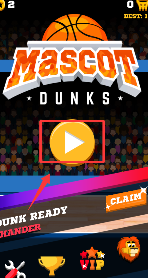 2、點(diǎn)擊紅色箭頭的地方幫它扣籃成功。