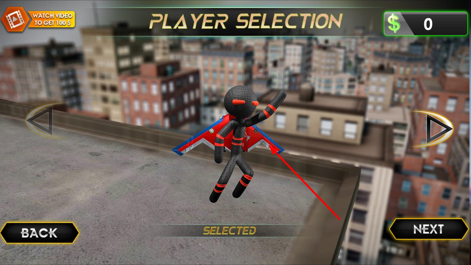 2、來到角色選擇頁(yè),選定心儀火柴人角色后,點(diǎn)擊NEXT,進(jìn)入飛行場(chǎng)景,開啟飛行之旅。