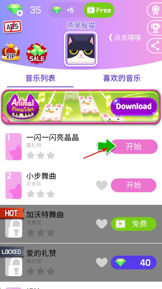 1、進(jìn)入游戲后選擇一首曲子,觀察屏幕上不斷落下的鋼琴磚,根據(jù)提示熟悉點(diǎn)擊時(shí)機(jī),完成基礎(chǔ)的音符跟隨操作。
