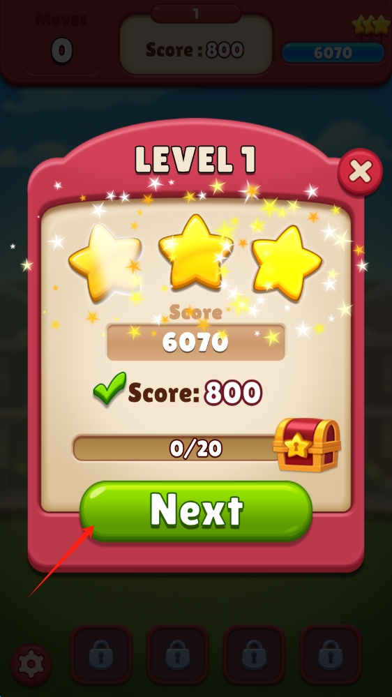 3、關(guān)卡完成后,點(diǎn)擊Next,進(jìn)入下一關(guān),或在地圖界面選擇新關(guān)卡,繼續(xù)挑戰(zhàn),點(diǎn)擊選擇關(guān)卡。