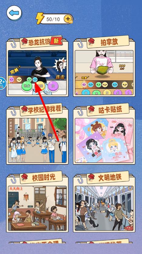 1、進(jìn)入游戲后,選擇初始關(guān)卡,閱讀關(guān)卡給出的熱梗提示,觀察畫(huà)面中的元素,明確需要完成的闖關(guān)目標(biāo),比如找出畫(huà)面中符合某熱梗的物品。