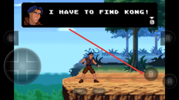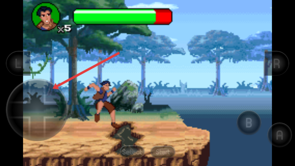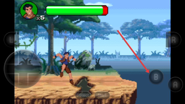 1、一進(jìn)入場景,操控主角按方向鍵移動,當(dāng)遇到障礙時,觀察場景提示跳躍裂縫,按A、B鍵配合行動。