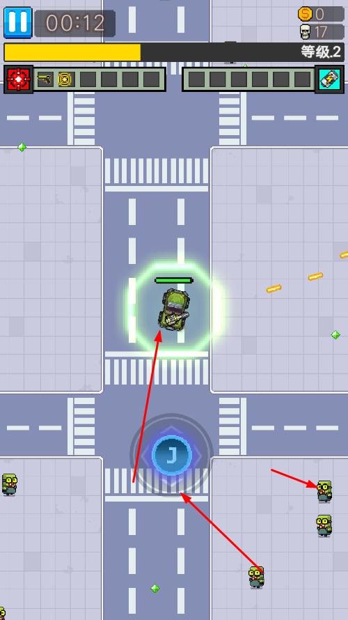 1、熟悉操作與初期戰(zhàn)斗:進入界面后,通過虛擬搖桿移動,點擊射擊按鈕消滅僵尸,熟悉武器的射程、射速,收集金幣與道具,完成基礎(chǔ)關(guān)卡。