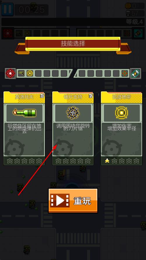 3、當達到一定條件后升級,會彈出技能選擇界面,選擇合適的技能來增強戰(zhàn)斗力。