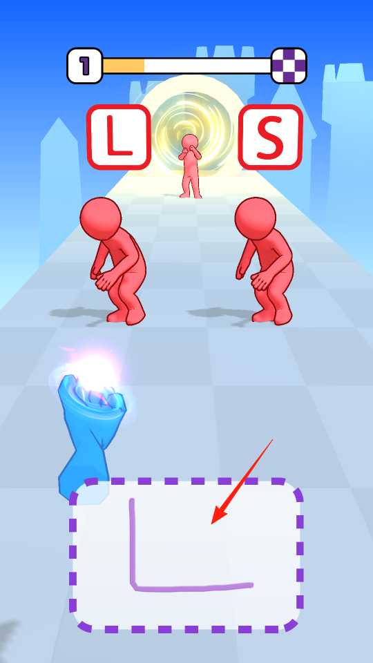 3、遇到字母障礙,在指定區(qū)域繪制對(duì)應(yīng)形狀,按提示畫出L形,幫助角色解鎖通道繼續(xù)前進(jìn),體驗(yàn)形狀繪制解謎玩法。
