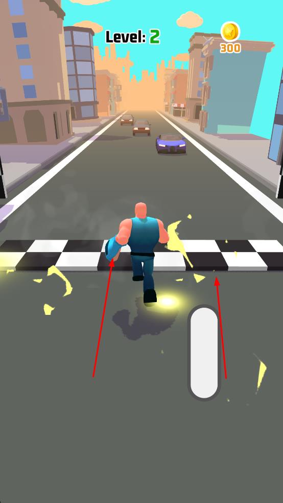 1、操控壯漢公路競(jìng)速:玩家操控壯漢在公路上奔跑競(jìng)速,通過(guò)左右移動(dòng)調(diào)整位置,面對(duì)前方出現(xiàn)的汽車與障礙物,及時(shí)出拳將其摧毀,保持前進(jìn)節(jié)奏不被阻擋,感受速度結(jié)合。