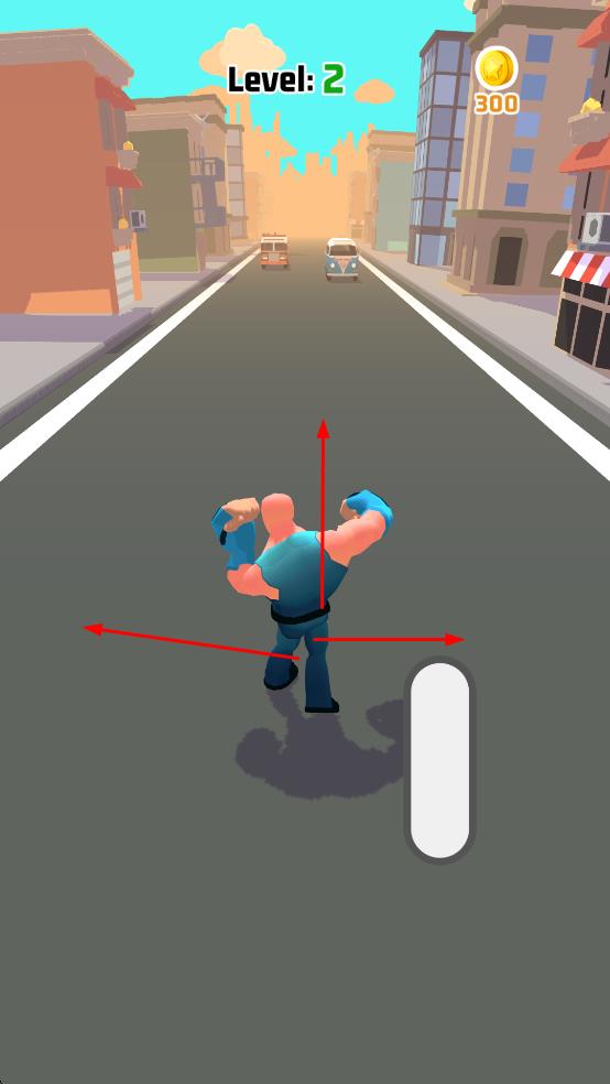 1、操控肌肉男角色在城市街道場(chǎng)景中移動(dòng),角色可前后左右移動(dòng),這是開(kāi)啟游戲的關(guān)鍵操作。