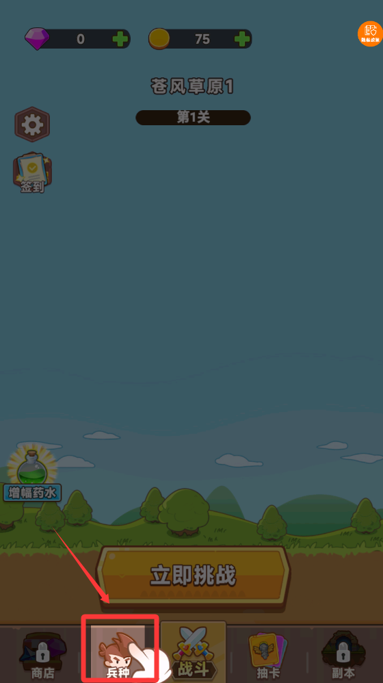 1、點(diǎn)擊一下紅色框框兵種按鈕進(jìn)入。
