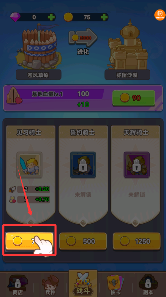 2、按一下購(gòu)買按鍵,提升一下小兵的實(shí)力。