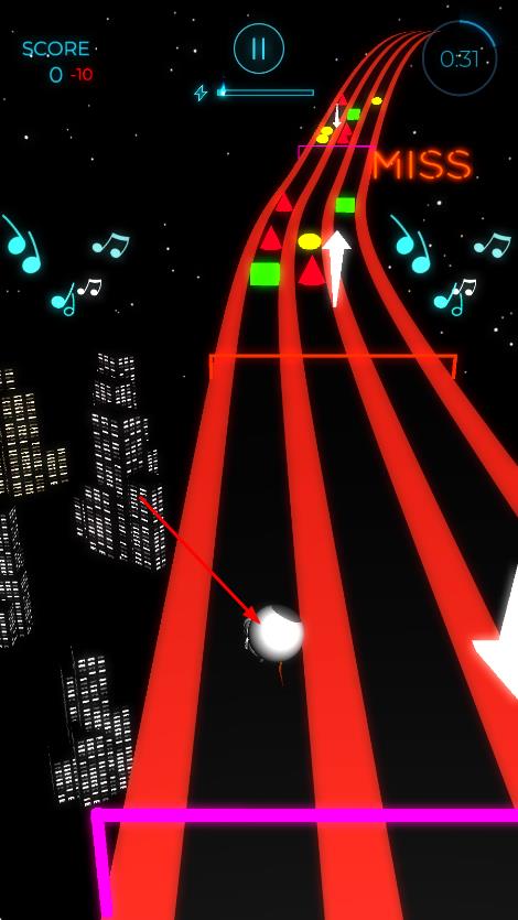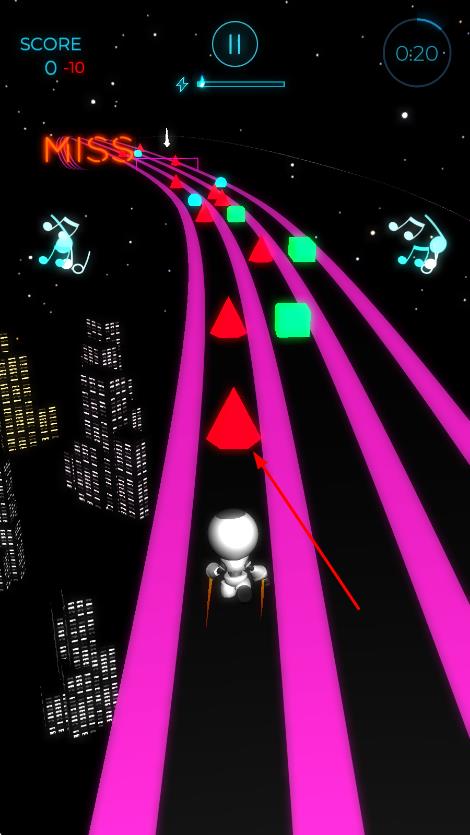 3、順利跑完賽道且精準(zhǔn)踩中更多節(jié)拍,即可獲得高分評價,解鎖新的音樂曲目、角色皮膚或更具難度的賽道。