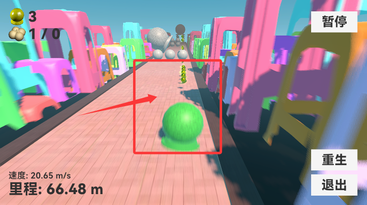 2、控制綠色圓球在繽紛道具搭建的賽道上,持續(xù)加速的滾動(dòng)。