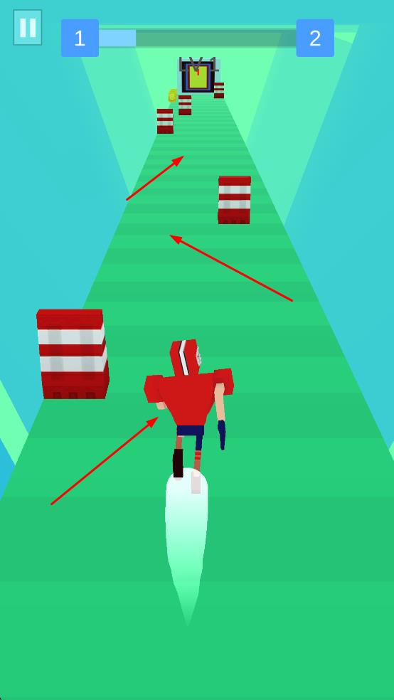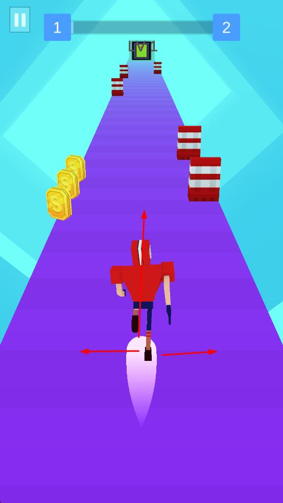 1、操控角色無(wú)限奔跑:玩家操控角色在方塊風(fēng)格的場(chǎng)景中無(wú)限奔跑,通過(guò)左右移動(dòng)、跳躍等操作調(diào)整路線,避開(kāi)障礙物與隨時(shí)坍塌的墻壁,保持前進(jìn)節(jié)奏不被中斷。