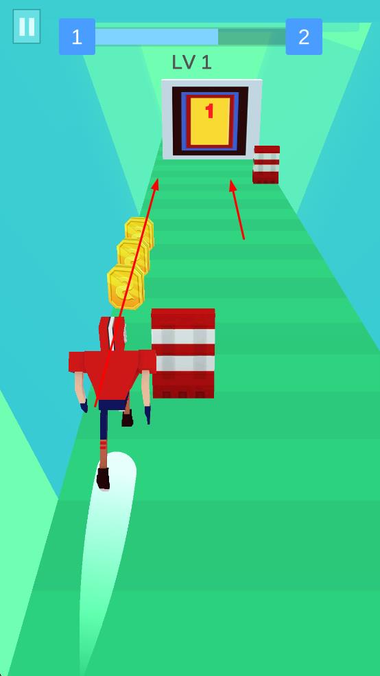3、關(guān)注上方顯示的關(guān)卡進(jìn)度,朝著終點(diǎn)門(mén)努力前進(jìn),爭(zhēng)取順利通過(guò)關(guān)卡。