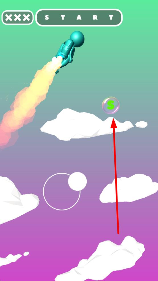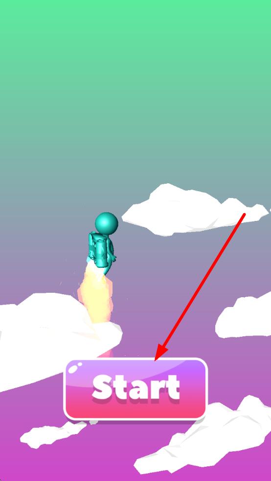 1、進(jìn)入界面,點(diǎn)擊色彩漸變的Start按鈕,讓火箭上的角色開啟飛行冒險(xiǎn),正式進(jìn)入游戲流程。