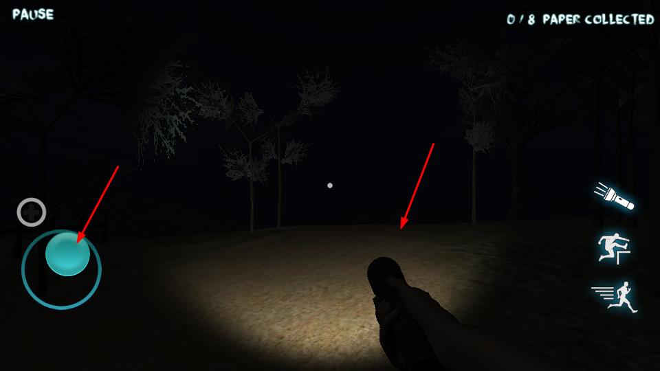 2、游戲過程里,左側(cè)虛擬搖桿是探索核心,輕觸滑動(dòng)控制角色移動(dòng)方向右側(cè)功能按鍵,可切換手電筒照明驅(qū)散迷霧,點(diǎn)擊奔跑圖標(biāo)調(diào)整行動(dòng)速度。