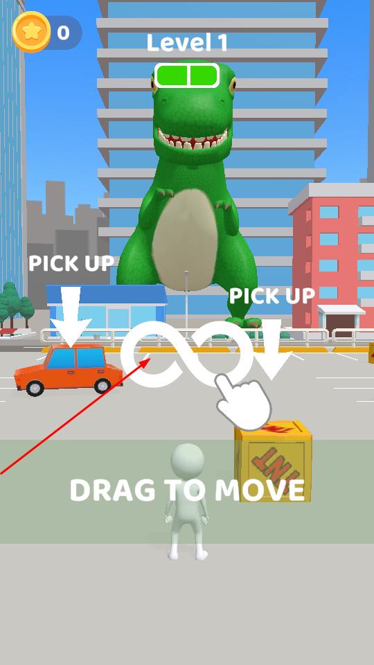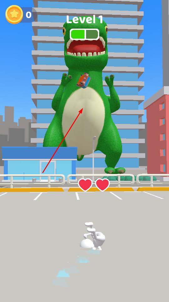 2、通過滑動操作,將汽車等物品傳送至恐龍?zhí)?,利用道具攻擊,逐步削減恐龍血量,同時能夠去推進戰(zhàn)斗進程。