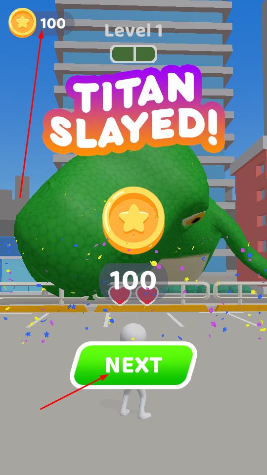 3、成功擊敗恐龍后,點擊NEXT進入下一關(guān)卡,同時獲取金幣獎勵,積累資源助力后續(xù)挑戰(zhàn)。