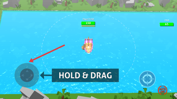 2、海戰(zhàn)階段,按住左側(cè)圓形操控盤并拖動(dòng),靈活控制船只在水域移動(dòng)、轉(zhuǎn)向,調(diào)整戰(zhàn)斗位置。