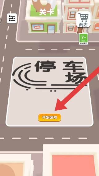 1、目前處于關(guān)卡1,可以點(diǎn)擊開(kāi)始游戲進(jìn)入場(chǎng)景進(jìn)行游玩,從呈現(xiàn)內(nèi)容看,是停車(chē)主題的初始界面。