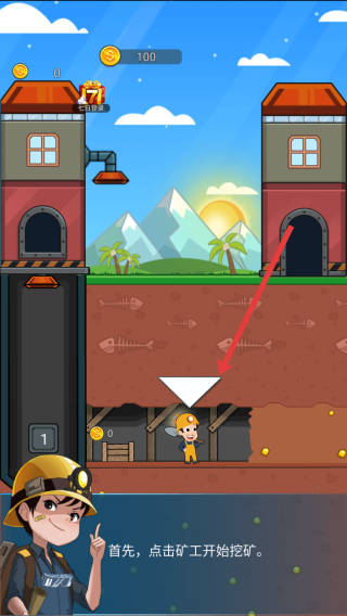 2、進(jìn)入礦山場景,根據(jù)提示內(nèi)容點(diǎn)擊礦工,讓礦工開始挖掘礦石,開啟采礦作業(yè)流程獲取資源。