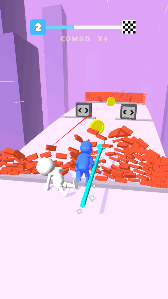 長(zhǎng)矛突刺是一款以長(zhǎng)矛突破障礙為核心的休閑類闖關(guān)佳作,玩家將操控手持長(zhǎng)矛的小人在多樣關(guān)卡展開挑戰(zhàn),關(guān)卡內(nèi)遍布木板、墻壁、柵欄等各類障礙物,你需要利用長(zhǎng)矛的沖擊力將其一一沖破,同時(shí)收集沿途散落的金幣,最終順利抵達(dá)終點(diǎn),在突破障礙的過(guò)程中感受暢快的沖擊力,收集金幣的過(guò)程也為闖關(guān)增添了更多目標(biāo)感。