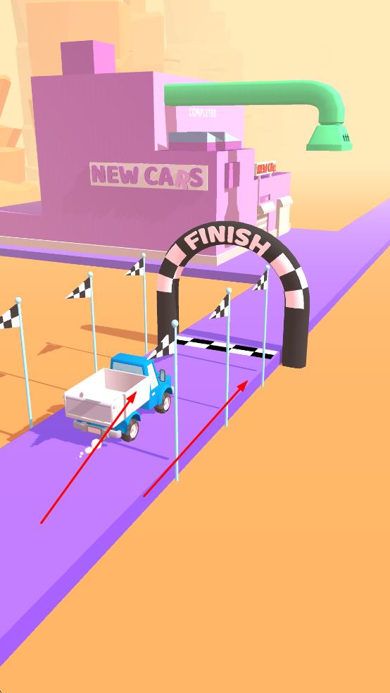 1、操控藍(lán)色卡車在紫色的道路上行駛,可通過特定操作控制卡車的前進(jìn)方向,沿著道路向目標(biāo)方向移動(dòng)。