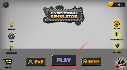 2、點(diǎn)擊紅框PLAY按鈕,進(jìn)入火柴人物理模擬游戲。