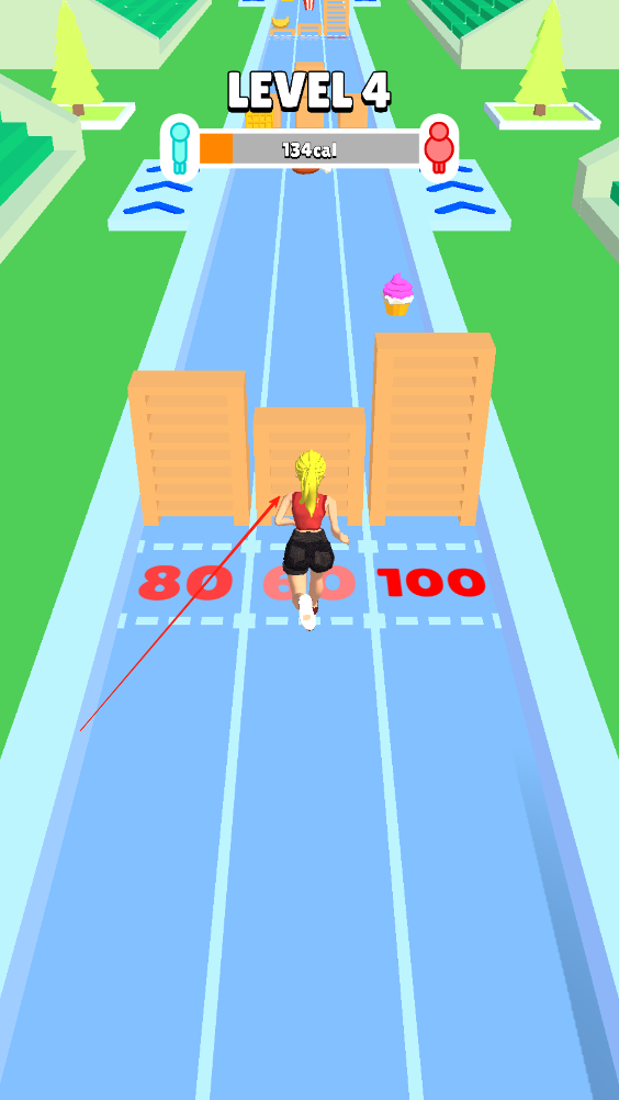 1、主題化賽道設(shè)計(jì):賽道圍繞減肥主題打造,融入健身房器械、健康食材等元素,與需躲避的高熱量食物形成對(duì)比,貼合主題又增加場(chǎng)景趣味性,更有代入感。