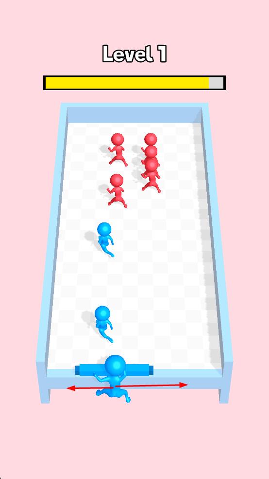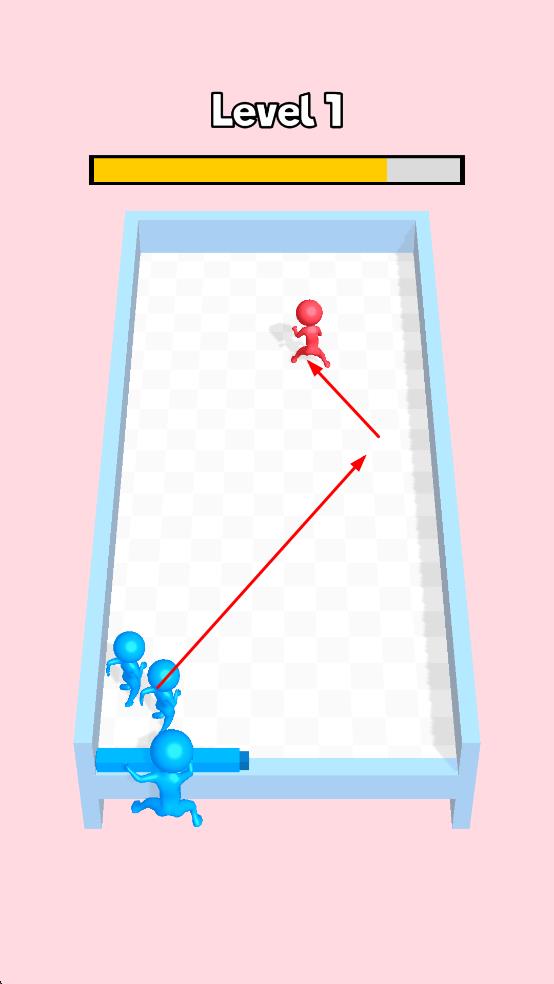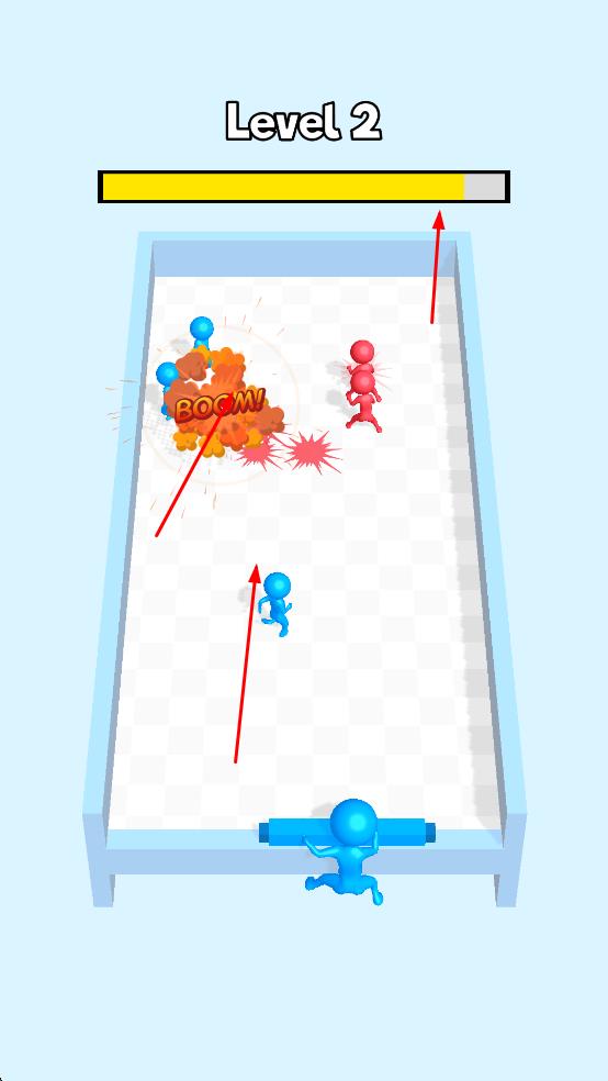 2、藍(lán)色小人可以通過碰撞等方式攻擊紅色小人,成功擊敗紅色小人會獲得分?jǐn)?shù),屏幕上方的進(jìn)度條會顯示關(guān)卡進(jìn)度。