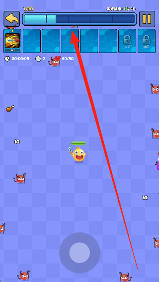 2、在競技中持續(xù)割草積累優(yōu)勢,觀察對手動(dòng)向,運(yùn)用策略避開干擾,提升自身競技表現(xiàn)。