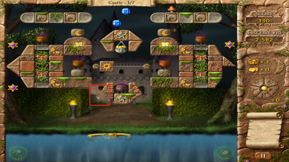 2、發(fā)射小球后,利用物理彈射,讓球在場(chǎng)景中反彈,優(yōu)先擊碎紅色框標(biāo)注的關(guān)鍵石塊,推進(jìn)關(guān)卡進(jìn)程。