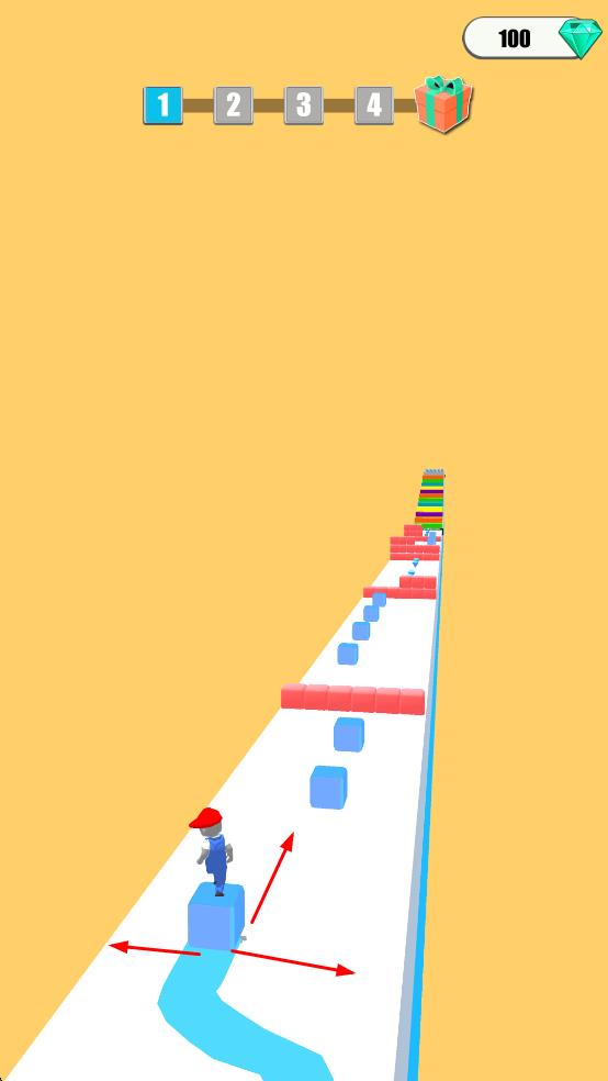 2、小人收集藍色方塊后,方塊會堆疊起來,形成更高的柱子,同時要避開紅色的障礙物,防止掉落。