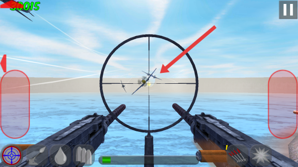2、瞄準(zhǔn)空中的敵機(jī),點(diǎn)擊中間直接進(jìn)行射擊攻擊目標(biāo),點(diǎn)擊右下角可以使用其他的武器殲滅敵人。