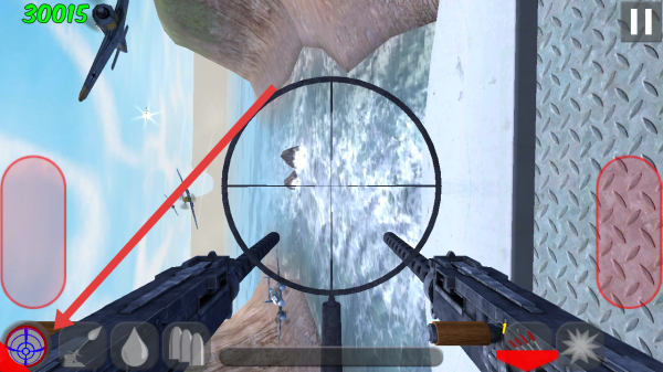 3、在進(jìn)行殲滅敵人的時(shí)候,可以點(diǎn)擊左下角靶標(biāo)的圖案,切換射擊的視角,按照敵人的飛行軌跡切換。