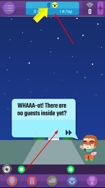 1、進入界面,會看到屏幕上方顯示笑臉圖標計分,以及每秒鐘獲得的分數(shù)和單次點擊獲得的分數(shù),點擊屏幕繼續(xù)。
