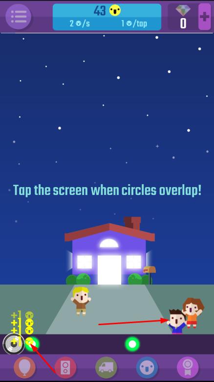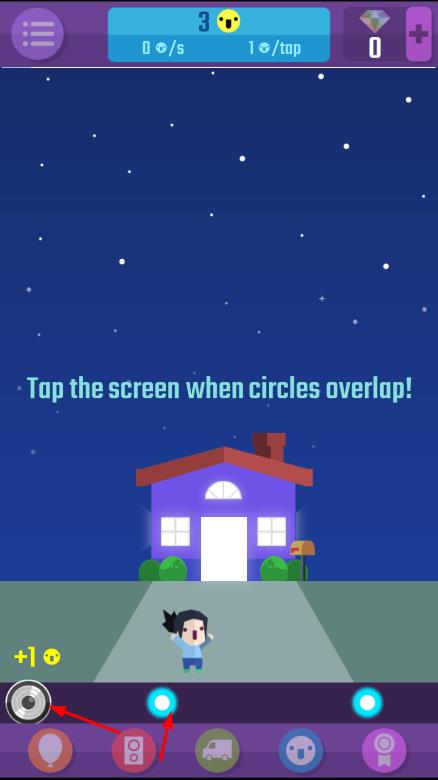 2、根據(jù)屏幕上的提示進行操作,當出現(xiàn)的圓形圖標重疊時,迅速點擊屏幕,即可獲得分數(shù),通過不斷準確點擊,累積分數(shù)。