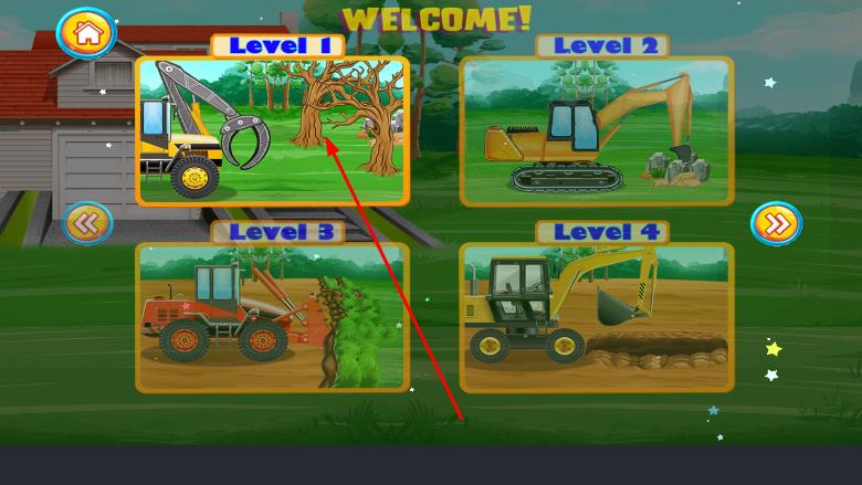1、在關(guān)卡選擇界面,點(diǎn)擊想要學(xué)習(xí)的工程車輛關(guān)卡,開啟車輛認(rèn)知學(xué)習(xí)。