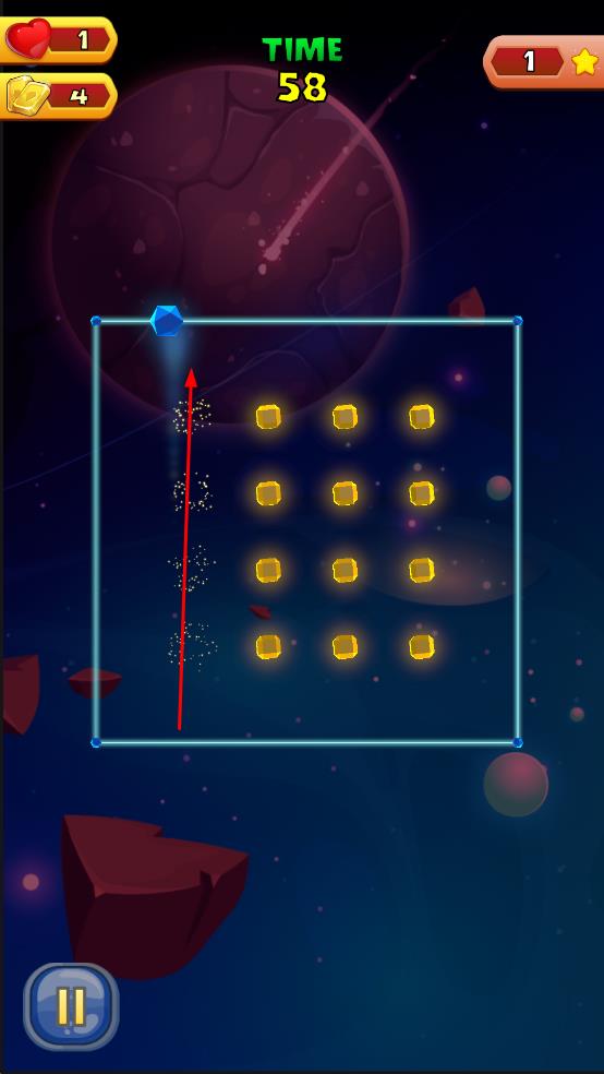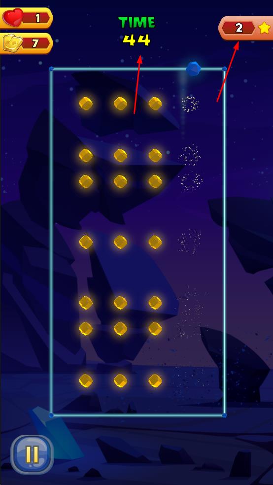 2、要注意時間限制,在規(guī)定時間內(nèi)收集更多的黃色方塊,同時上方會顯示當(dāng)前收集到的方塊數(shù)量和關(guān)卡信息。