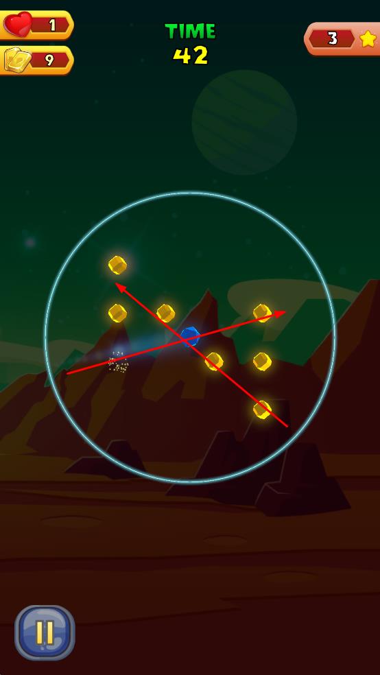 1、操控藍(lán)色的寶石在場景中移動,收集黃色的黃金。