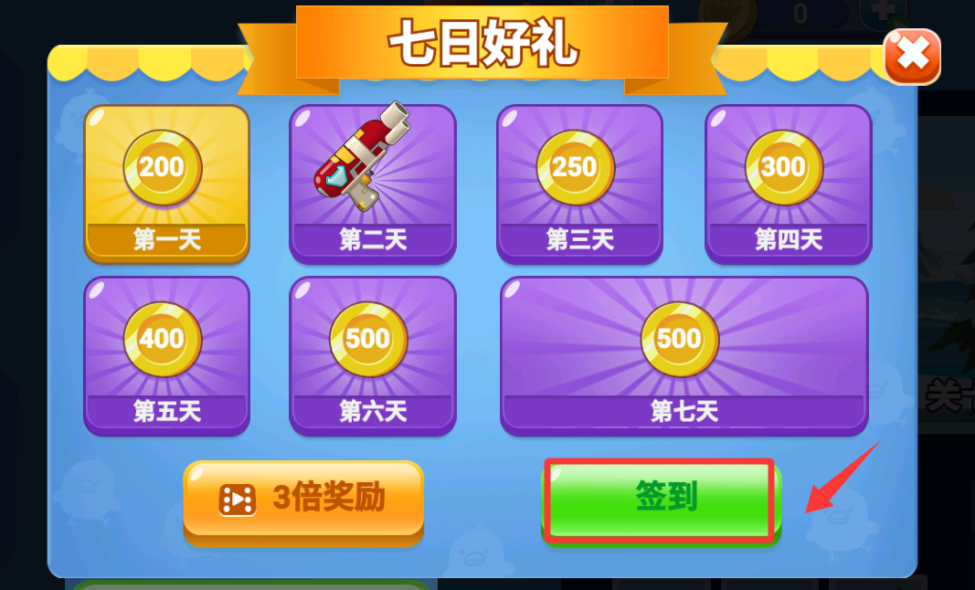 1、進入游戲第一時間簽到領(lǐng)取獎勵。