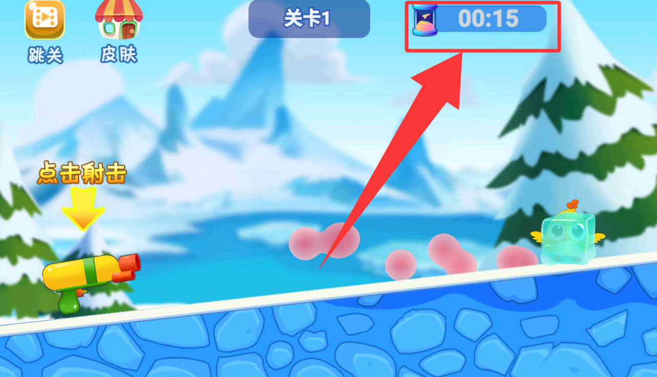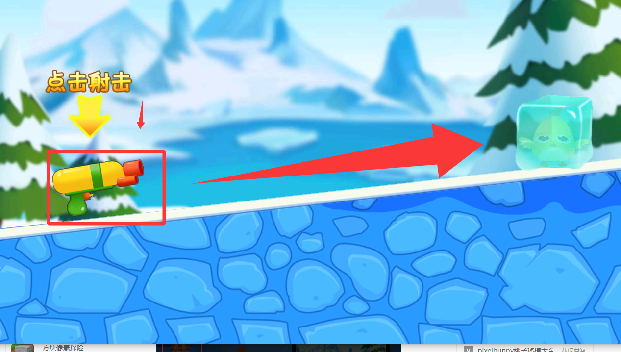 3、點擊紅色框框的水槍發(fā)射過去教小雞。