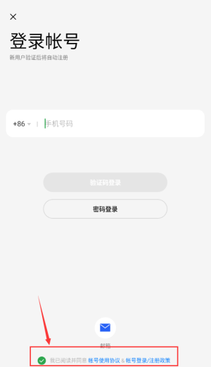 3、勾選紅框協(xié)議選項,同意條款后繼續(xù)登錄操作。