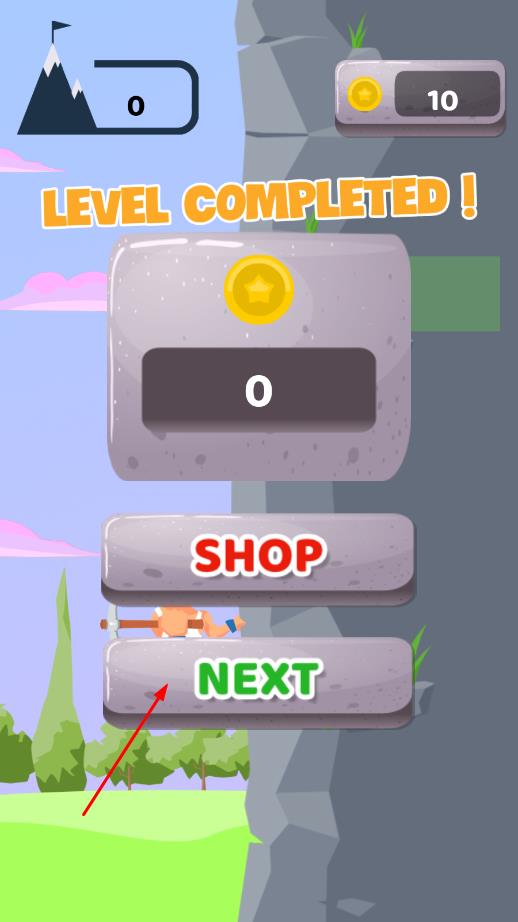 3、成功攀爬到山頂,完成當(dāng)前關(guān)卡,獲得金幣獎(jiǎng)勵(lì),點(diǎn)擊NEXT按鈕,可進(jìn)入下一個(gè)關(guān)卡繼續(xù)挑戰(zhàn)。