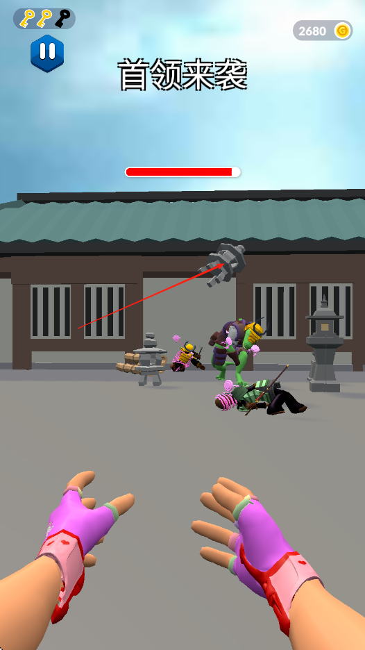 3、在首領的場景尋找特殊的手套,找到特殊手套后攻擊的威力會更強,時刻注意首領丟過來的石頭,先甩開石頭再攻擊首領。