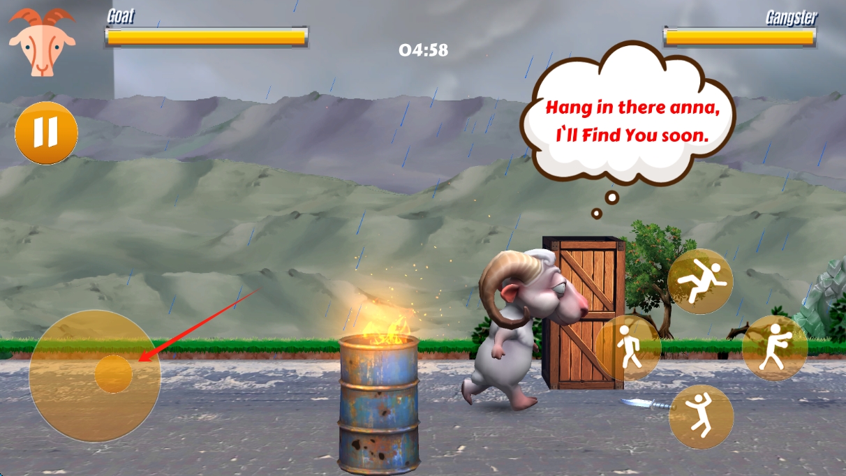 3、在尋找Anna的過程中,擊敗敵人,積累經(jīng)驗(yàn),提升山羊能力,完成任務(wù),拯救同伴,撥動(dòng)輪盤移動(dòng)人物。