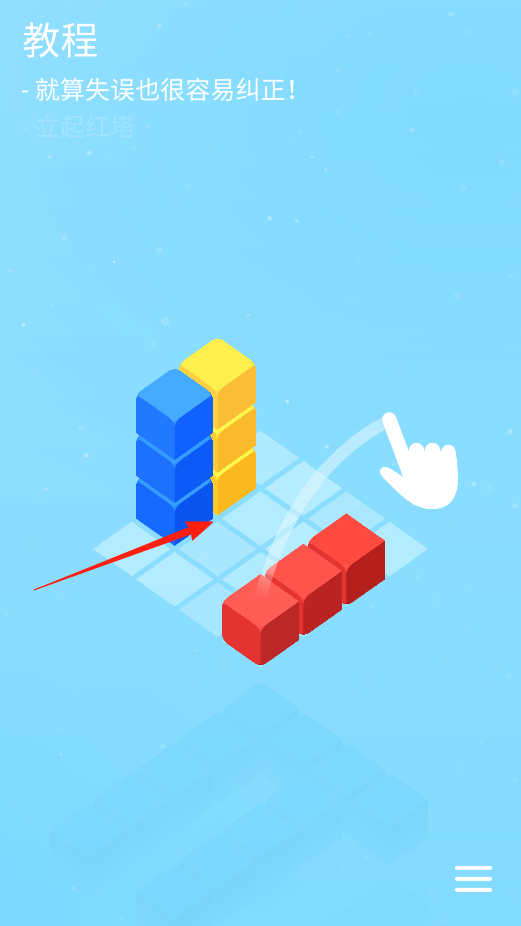 3、按照教程,糾正失誤操作,將倒地的紅塔立起調(diào)整塔塊位置,恢復(fù)初始狀態(tài),學(xué)習(xí)失誤修正,體驗塔塊重置機(jī)制。